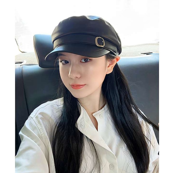 ベルトデザインがアクセントになった上品なレザーキャスケットです。