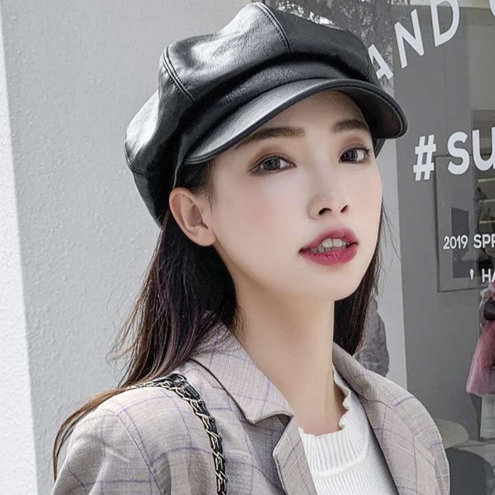 八角形シルエットレザーキャスケット帽