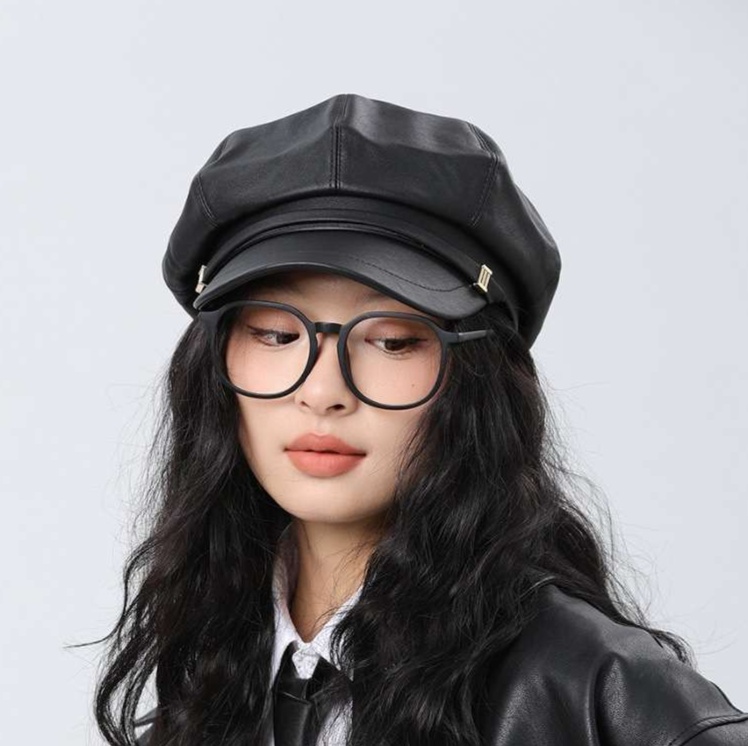 洗練された上質なレザーを使用したキャスケット帽子。