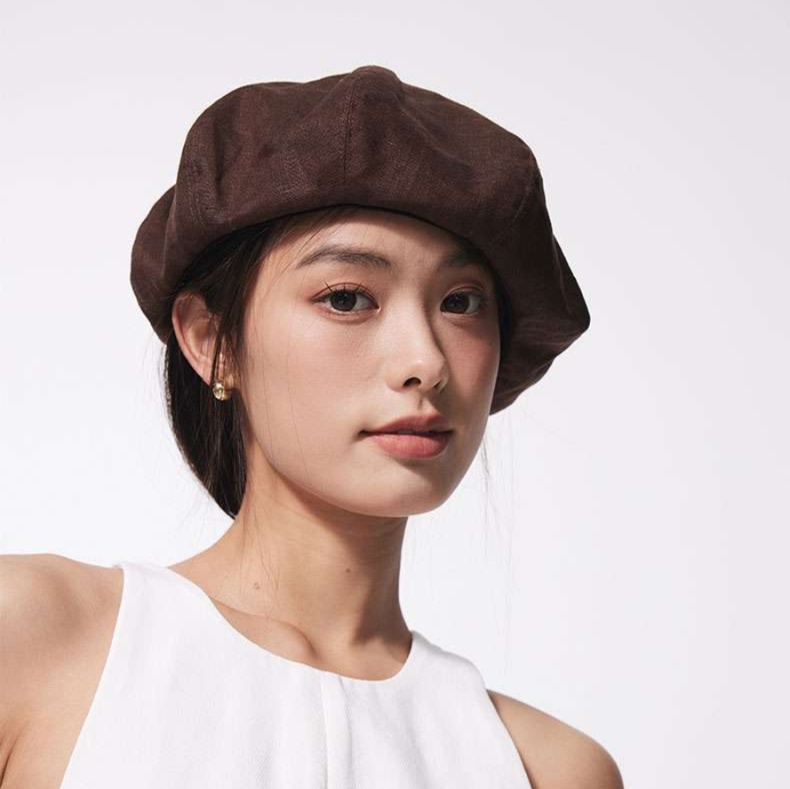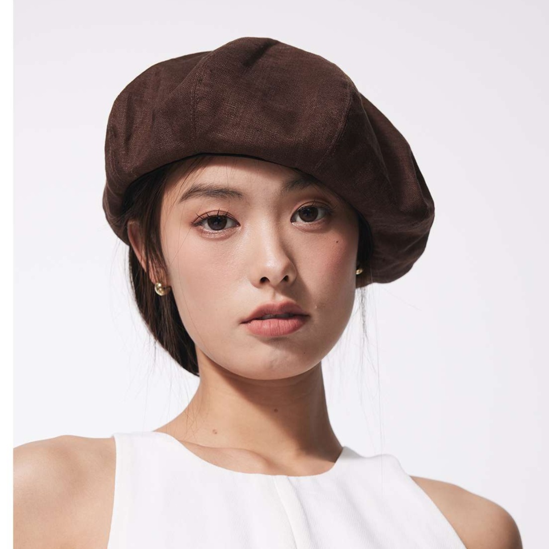 上質なリネン素材を使用したキャスケットは、柔らかな風合いと通気性の良さが特徴。