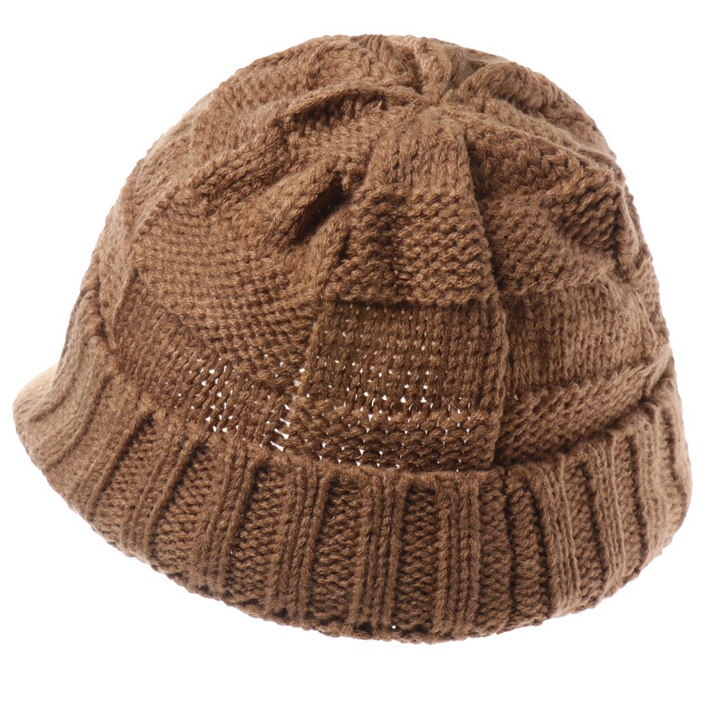 立体的なケーブル編みが目を引くニットキャスケットです。