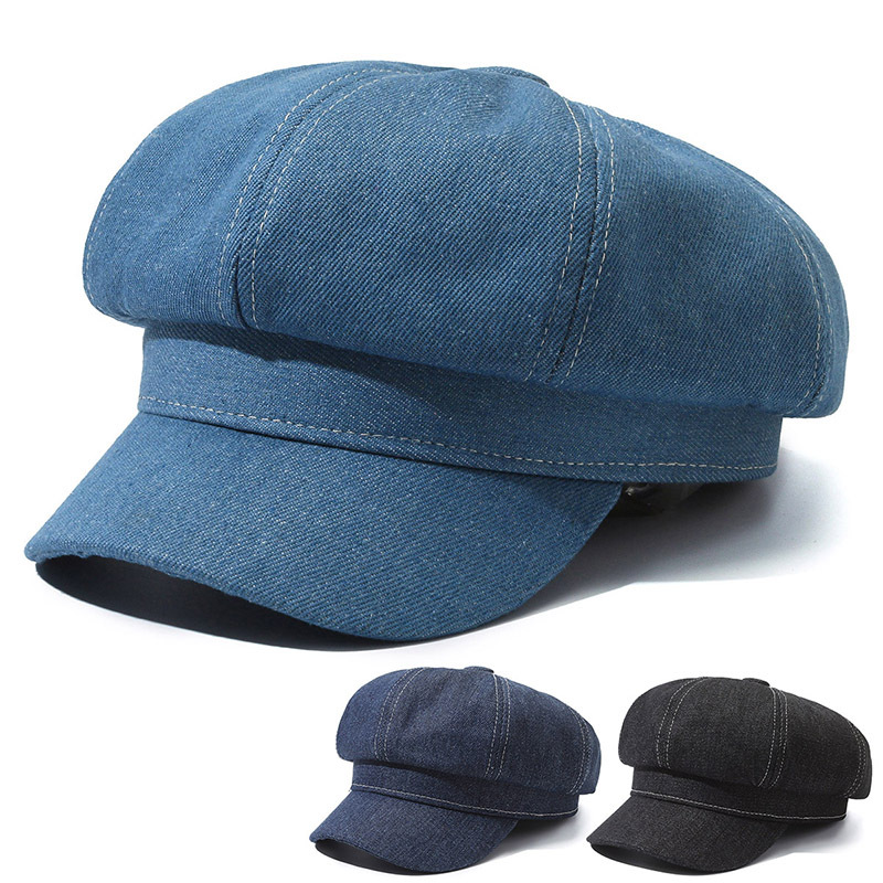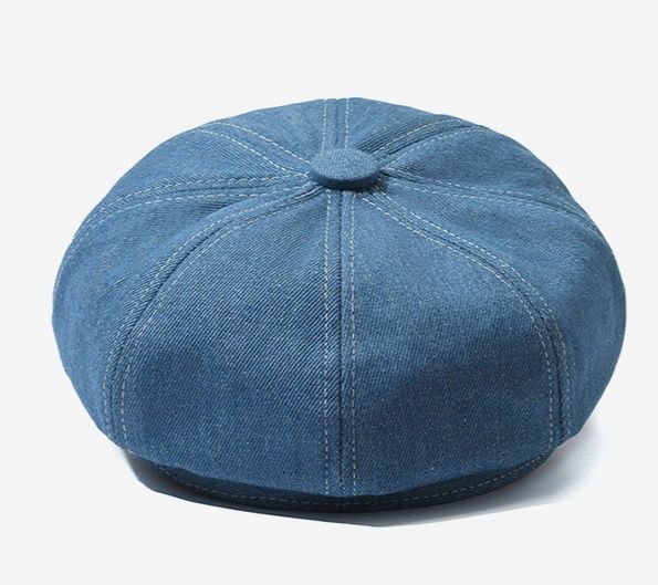 クラシックな八角形のシルエットが魅力的なデニム素材のキャスケットです。