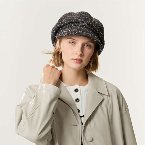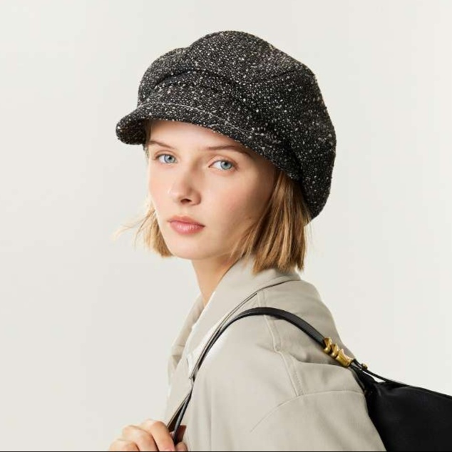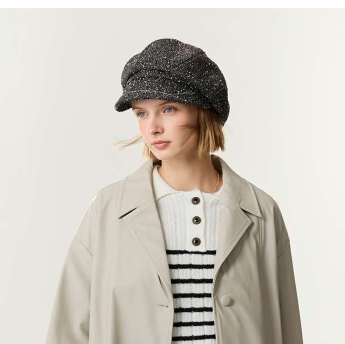 高品質なツイード生地を贅沢に使用したキャスケット。絶妙なボリューム感と立体的なシルエットが特徴で、洗練された印象を与えます。つばの長さが程よく、小顔効果も期待できるため、秋冬のコーディネートに華やかさをプラス。スタイルを引き立てる一品として、季節を問わず活躍するアイテムです。